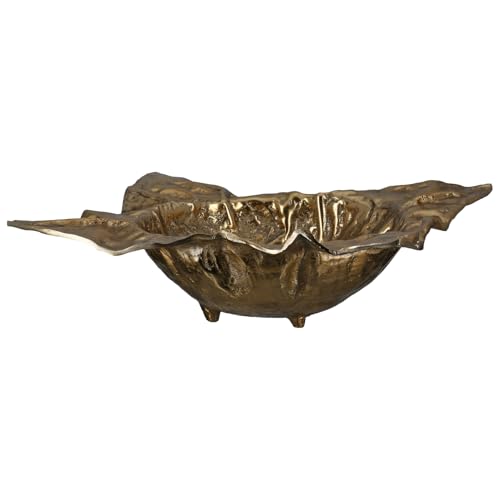 GILDE skål Crumple av aluminium – rektangulär – strukturerad – guldfärgad – höjd 12 cm x bredd 42 cm – dekorativ skål