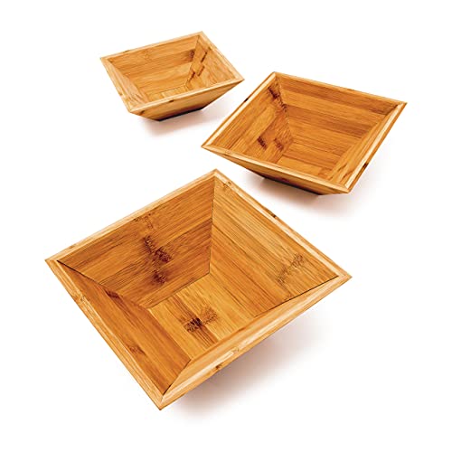 Relaxdays Bambu skålar i en uppsättning av 3 som en chic dekorativ skål och fruktskål fyrkantiga skålar i 3 olika storlekar mellanmålsskål av trä stapelbar också som bakverk skål idealisk natur