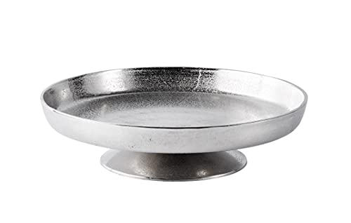 Dekorativ tallrik, serveringsfat, aluminium, dekoration, silver, lyx – modern dekorativ skål av metall – bordsdekoration, bröllop – juldekoration för vardagsrum, matsal eller kök – XXL 40 cm