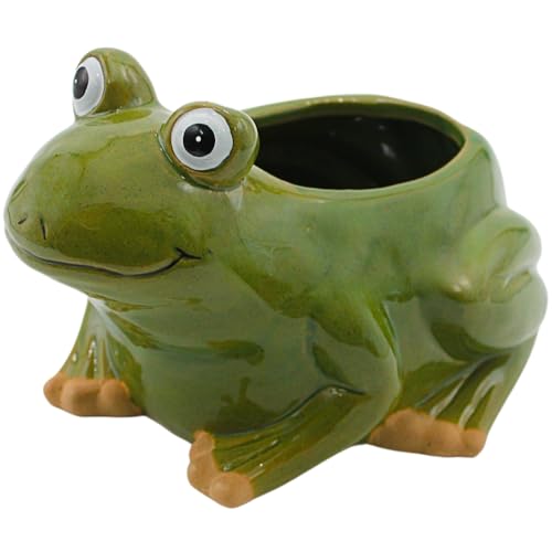 Ytterkruka – blomkruka – planteringskärl – dekorativ skål av keramik, motiv: groda, mått L/B/H: ca 22,5 x 17 x 14,5 cm