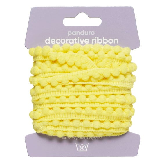 Pompom-band dekorband gul, 4 m långt och 10 mm brett