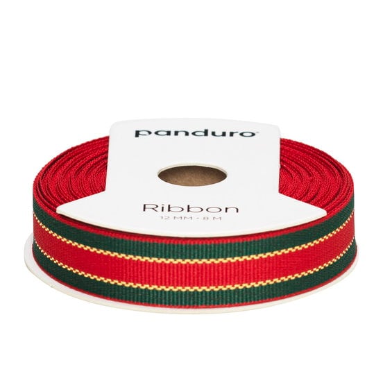 Dekorband röd-grönt med dubbel guldsöm, 8 m långt och 12 mm brett