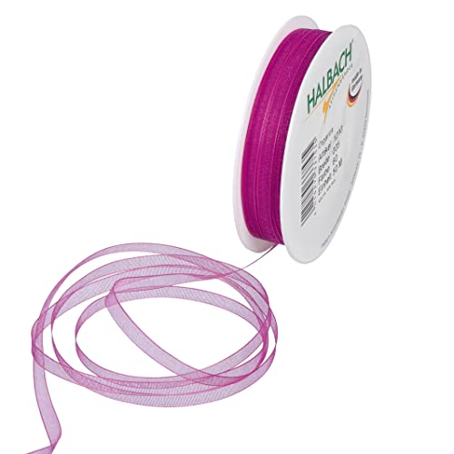 Halbach sidenband premium organzaband bredd 5 mm längd 50 m pysselband för att dekorera gåvor, transparent band, dekorband för pyssel, färg: rosa