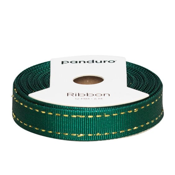 Dekorband grön med dubbel guldsöm, 6 m långt och 12 mm brett