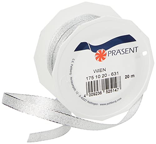 PRESÄSENT C.E. Pattberg Wien presentband silver, 20 m presentband för inpackning, 10 mm bred, tillbehör för dekoration och hantverk, dekorband för presenter