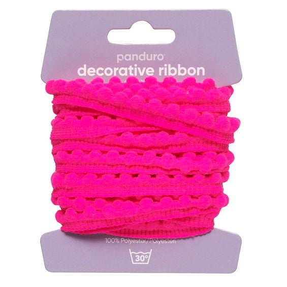 Pompom-band dekorband cerise, 4 m långt och 10 mm brett