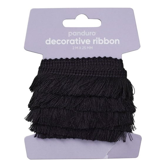 Fransband, svart dekorband – 2 meter långt och 25 mm brett