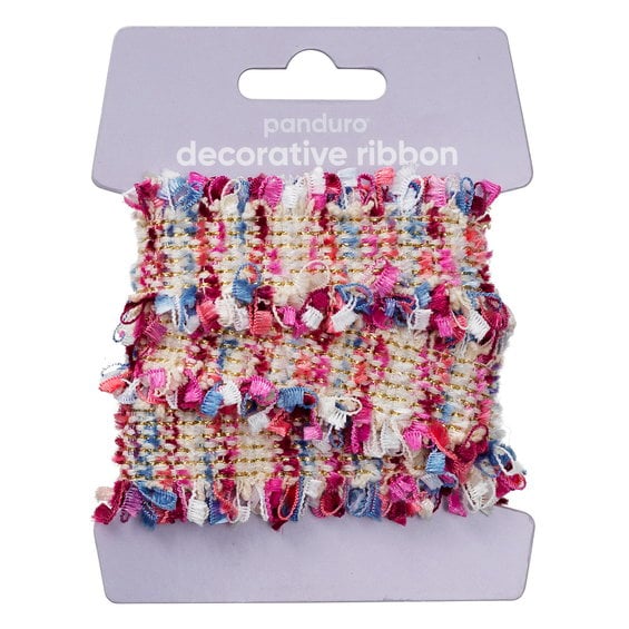 Panduro Hobby Dekorband med härligt rosa fluffiga fransar 1 m långt, 45 mm brett