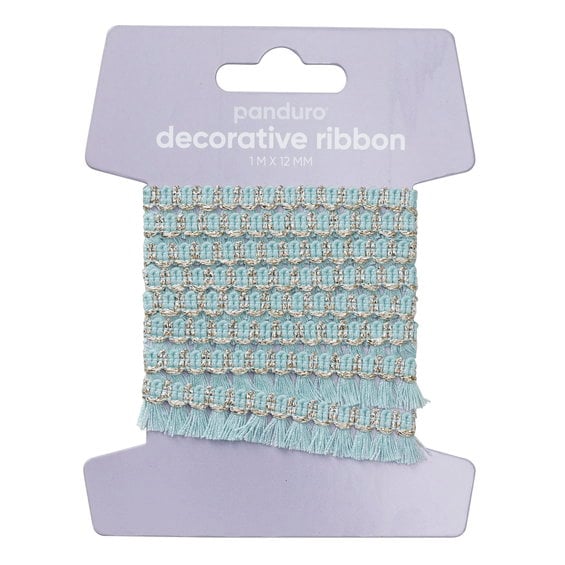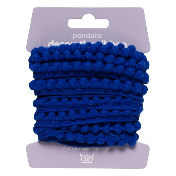 Pompom-band dekorband turkos, 4 m långt och 10 mm brett