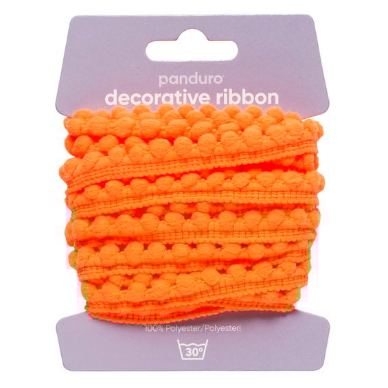 Pompom-band dekorband neonorange, 4 m långt och 10 mm brett