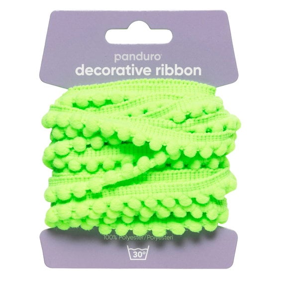Pompom-band dekorband grön, 4 m långt och 10 mm brett
