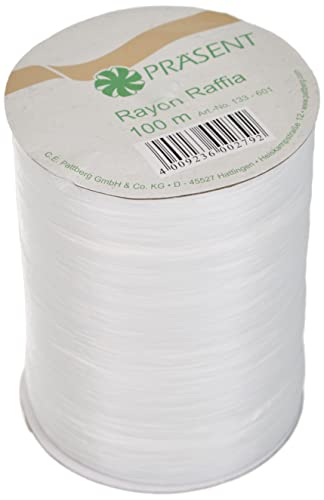 PRÄSENT Rayon Raffia pysselband vitt, 100 m dekorband för inslagning av gåvor, dekoration och pyssel festliga dekorationer, band för speciella tillfällen