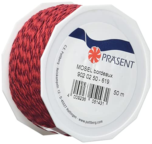 PRESÄSENT C.E. Pattberg Mosel snöre bordeauxröd (röd), 50 m flätat snöre för gåvor, paket, 2 mm bredd, tillbehör för dekoration och hantverk, rivbeständigt dekorband