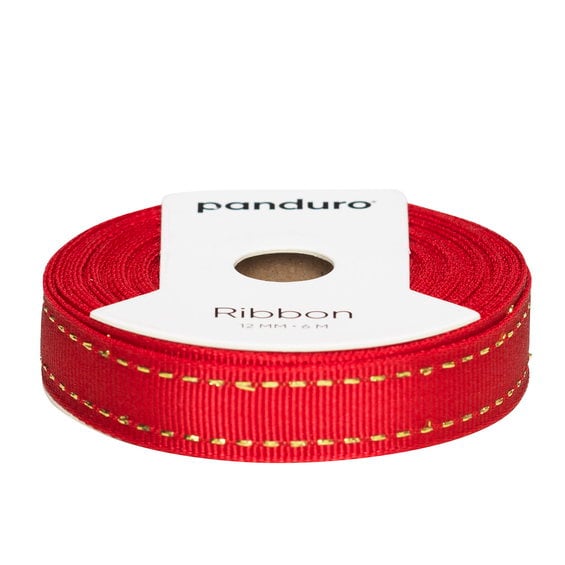 Dekorband röd med dubbel guldsöm, 6 m långt och 12 mm brett