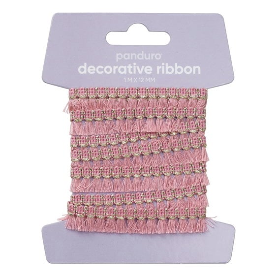 Fransband, rosa dekorband – 1 meter långt och 12 mm brett