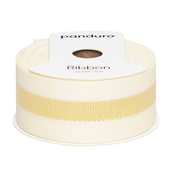 Dekorband offwhite med bred guldsöm, 8 m långt och 25 mm brett