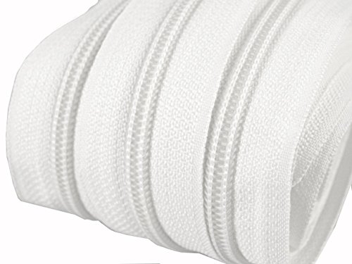 6 m oändlig dragkedja, 5 mm löpskena + 15 dragkedja, metervara, delbar, färgval (vit)