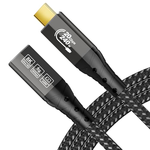 ZIKNYDO USB C-förlängningskabel 2m (USBC 3.2 20 Gbps-hane till hona, PD3.1 240W 5A) 8K@30Hz, 4K@144Hz/ 60Hz USBC-förlängningskabel för Thunderbolt 4, PSVR2, iPhone16, iPad, MacBook, Dell XPS, Switch