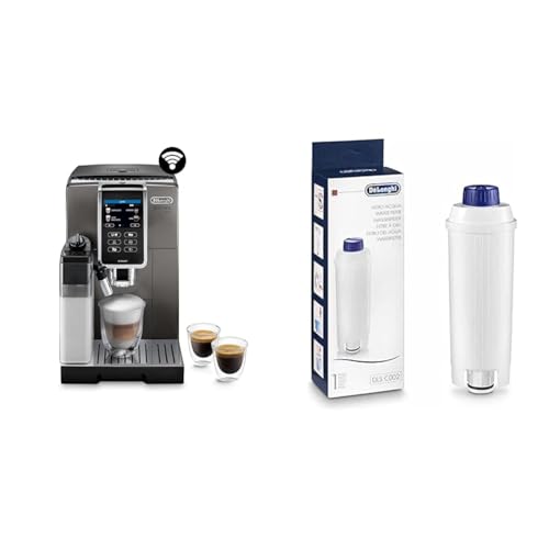 De'Longhi Dinamica Plus, kaffemaskin och cappuccino med kvarn, ECAM372.95.TB, titan/svart & De'Longhi DLSC002 Vattenfilter, Vit, 1 styck
