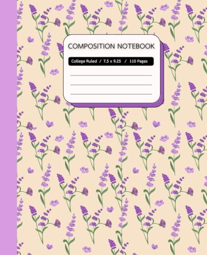 Composition Notebook College Ruled: Vintage Flowers Botanical Illustration (Delphinium), Aesthetic Purple Floral, Journal for College, School, Office ... for Women, 110 Pages, Paperback Matte Cover