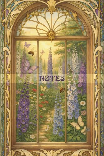 Delphinium Garden Window Notebook: 120 pages with a beautiful Art Nouveau style cover
