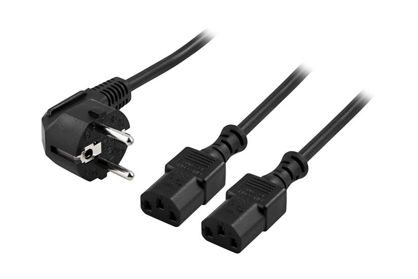 Deltaco CEE 7/7 - IEC C13 (2x angled) 2m