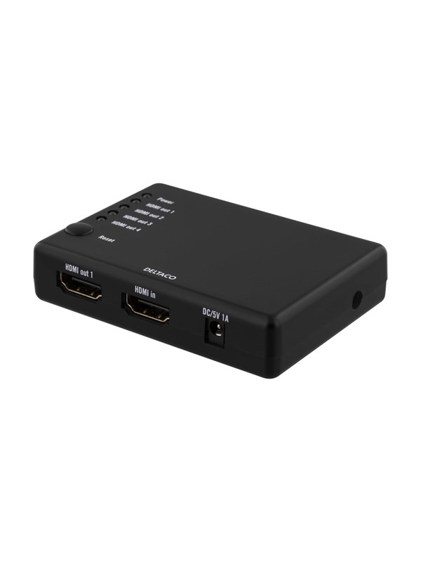 Deltaco HDMI-splitter, 1x HDMI in och 4x HDMI ut - Svart