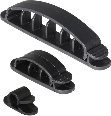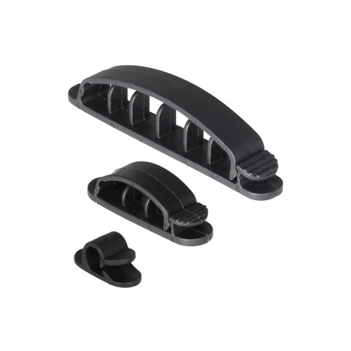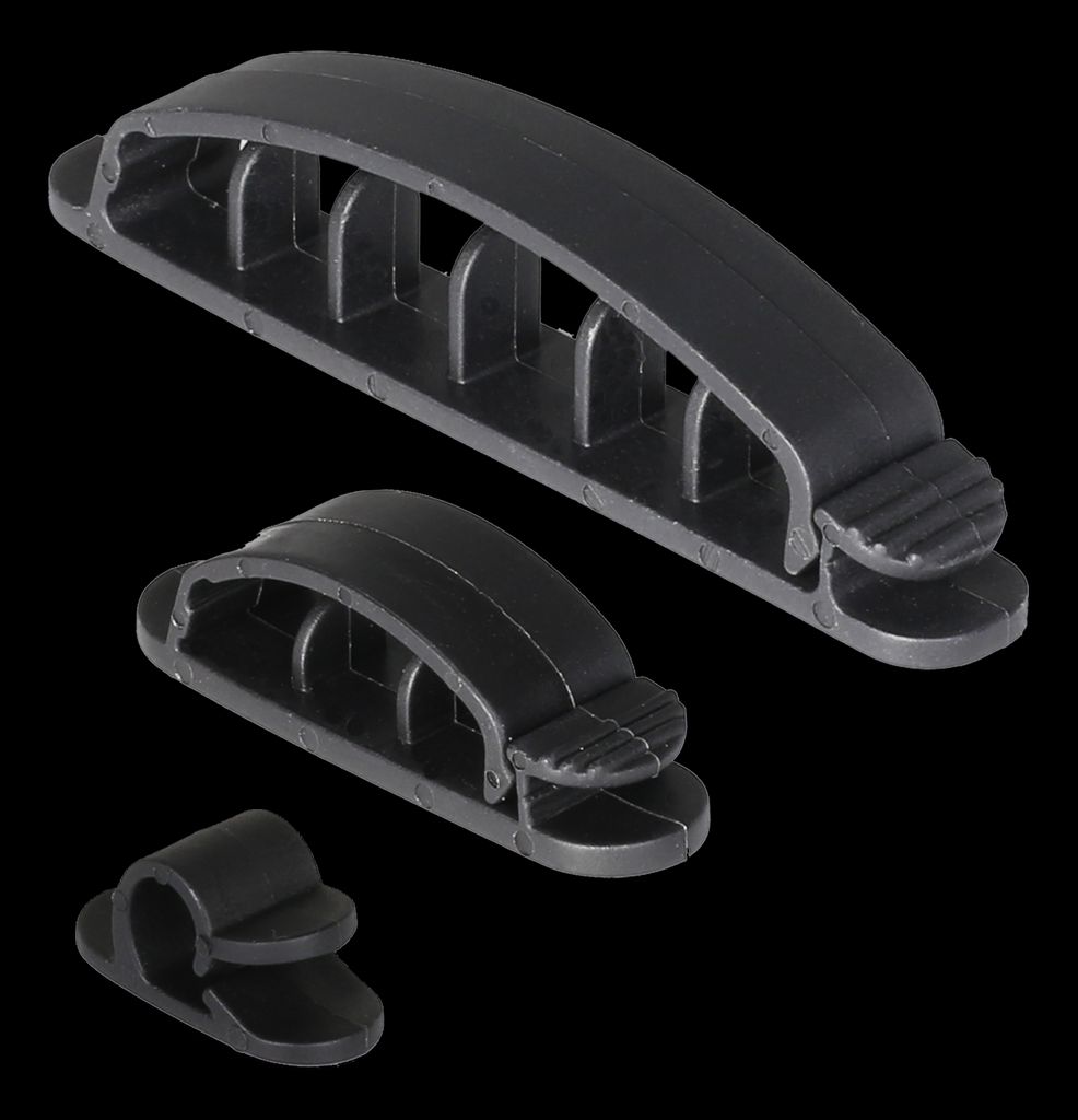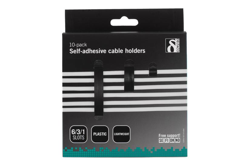 DELTACO självhäftande kabelklämmor i plast, 1/3/6 platser, 10-pack, svart