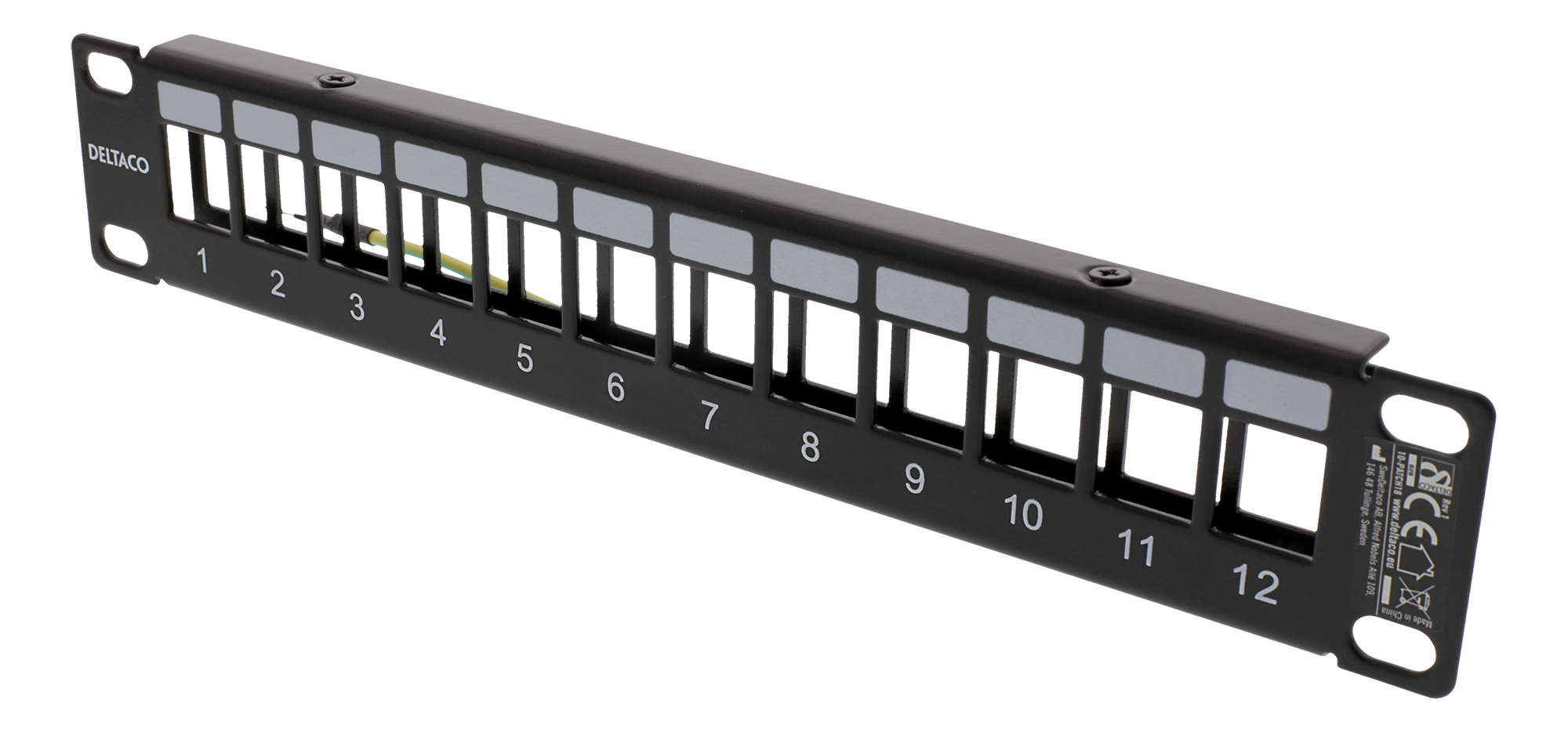 Deltaco DELTACO 10" Keystone patchpanel, 12 portar, 1U, metall, svart