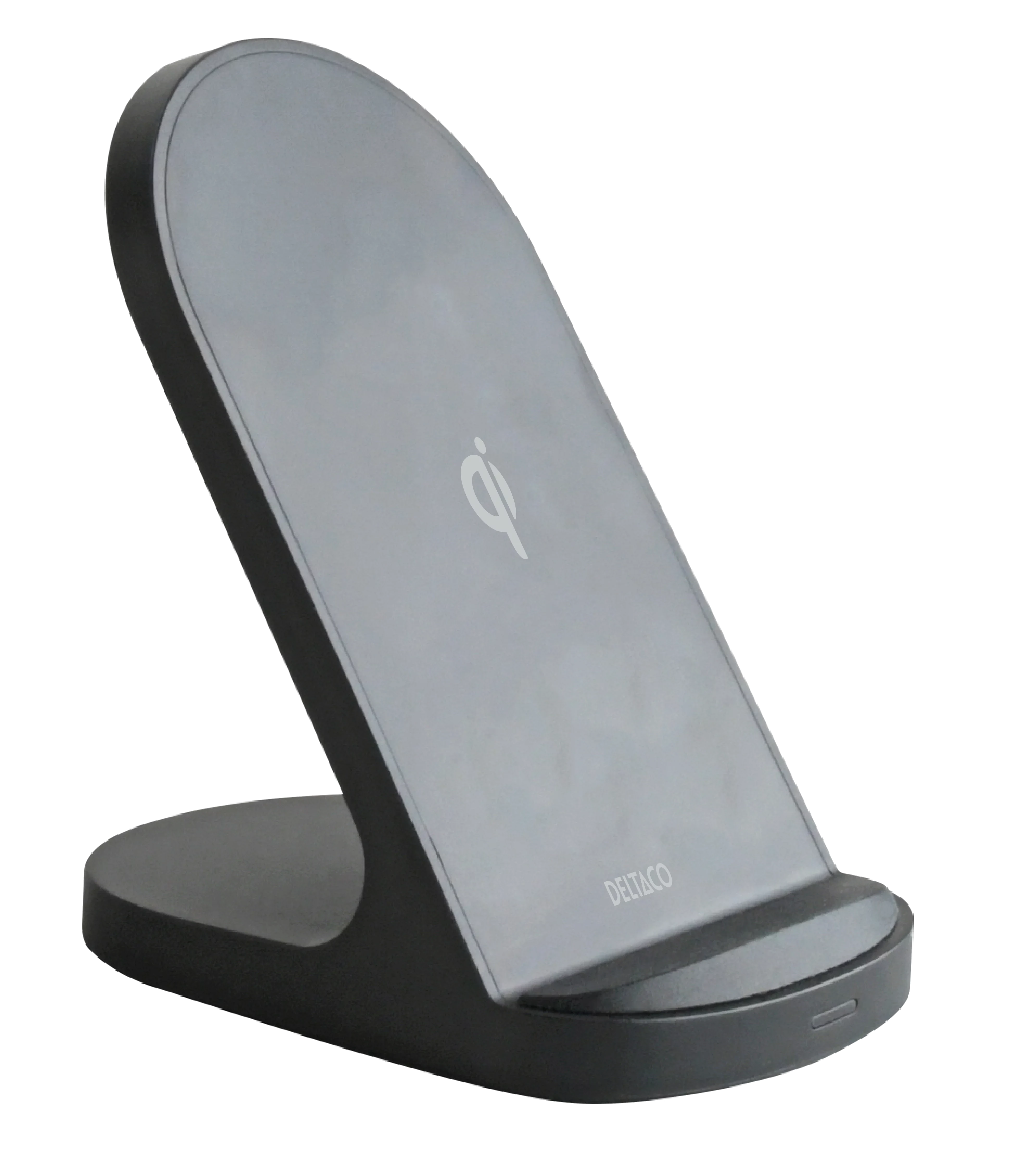 DeltacoTrådlös laddare med stativ, 15 W Snabbladdning, USB-C, Qi-certifierad, svart