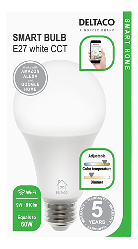 Deltaco Smart Home LED WiFi 2,4GHz 806lm 2700-6500K E27 9W (Dimbar)