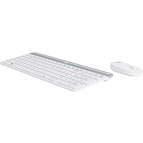 Logitech MK470 Slim Combo Set med trådlöst tangentbord och mus med 2,4 GHz anslutning via nano USB-mottagare, 10 m räckvidd, 18 månaders batteritid, PC/bärbar dator, tysk QWERTZ-layout, vit