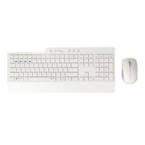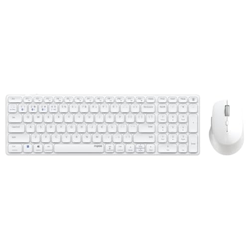 RAPOO, Trådlöst tangentbord och mus med portugisisk QWERTY (Combo Tangentbord och mus med multiläge Bluetooth och 2.4GHZ, optisk mus med 1 600 dpi) Vit, 00192495