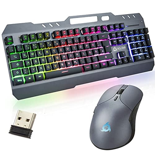 KLIM Unity – Trådlöst tangentbord och mus Set DE Layout – NY 2023 – hållbar, ergonomisk, halvmekanisk – trådlöst mus tangentbord set för bärbar dator PC Mac PS4 Xbox One – hållbart inbyggt batteri