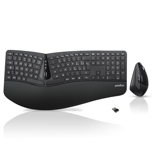 Perixx Periduo-605, trådlöst ergonomiskt tangentbordspaket, delat tangentbord och vertikal mus med handledsstöd och membranknappar, spansk QWERTY-layout