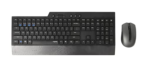 RAPOO Trådlöst tangentbord och mus med portugisisk QWERTY (Combo tangentbord och mus med Bluetooth 2,4 GHz multiläge, optisk mus med 1 600 dpi) svart, 00192494