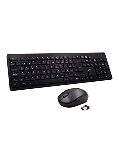 Ewent EW3256 2,4 GHz trådlöst tangentbord och mus, spansk QWERTY Chiclet, trådlöst tangentbord bärbar tyst mus, lång batteritid, svart