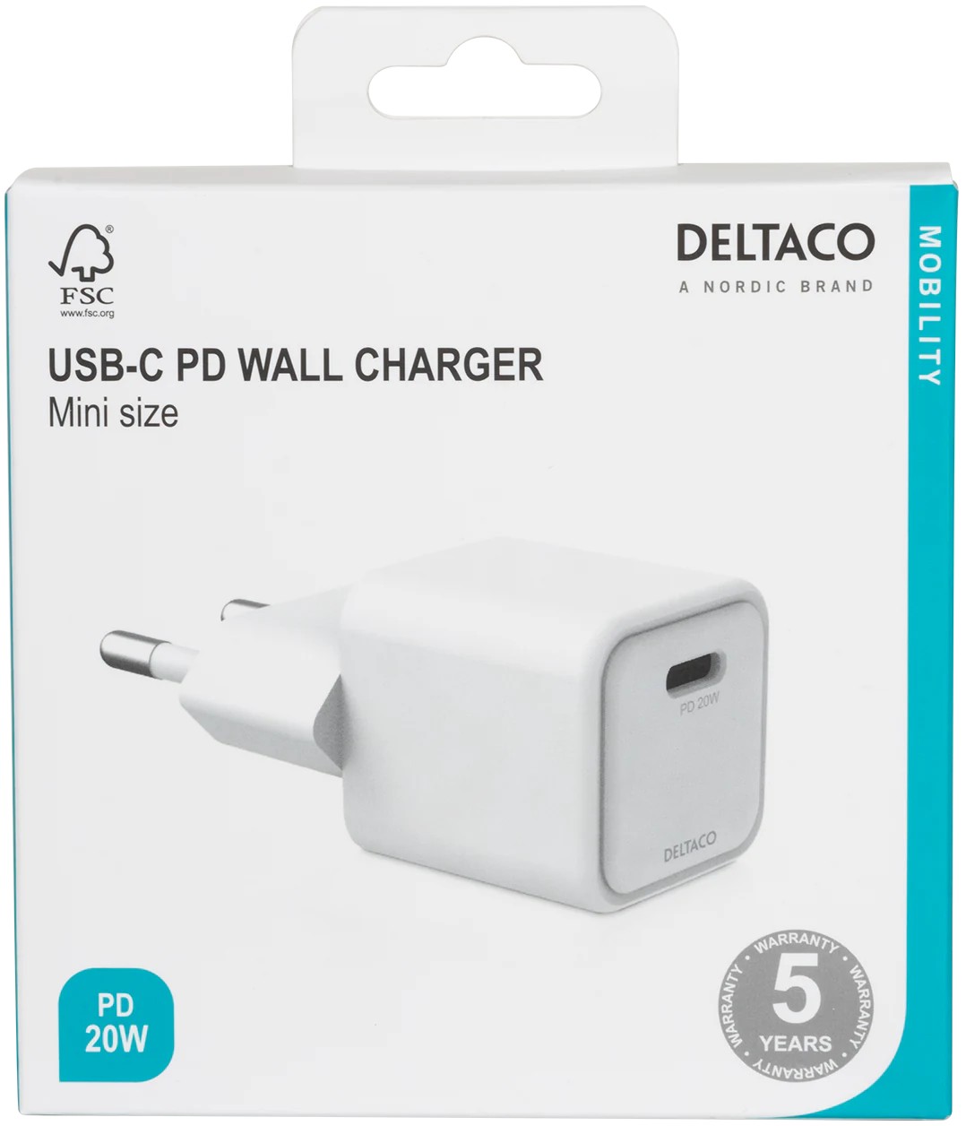 Deltaco USBC-AC156 Slim USB-C Väggladdare 30W