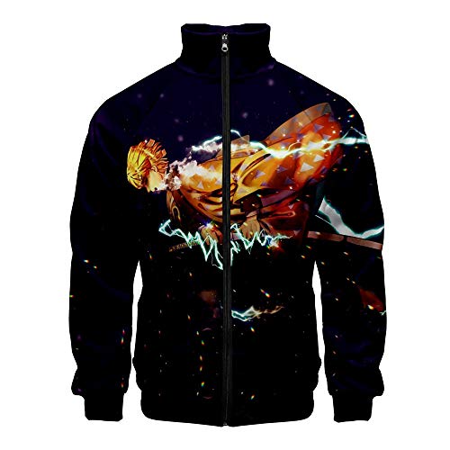 Yumenam Unisex Anime Demon Slayer Jacka Tanjirou Nezuko 3D-tryckt långärmad stående krage dragkedja sweatshirt med fickor ledig pullover jumper Kimetsu ingen Yaiba cosplay kostym ytterkläder, Ya01, S