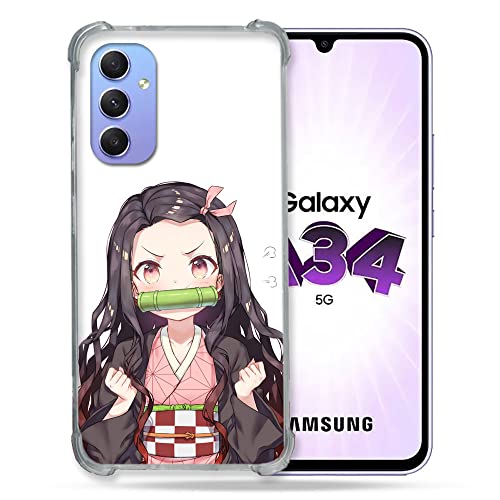 Cokitec Förstärkt härdat glas fodral för Samsung Galaxy A34 5G Manga Demon Slayer Nezuko