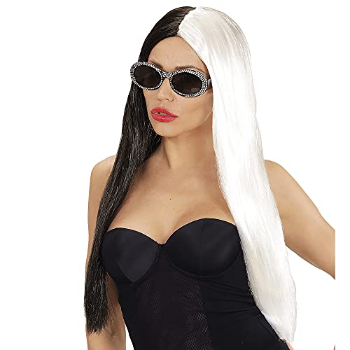 W WIDMANN MILANO Party Fashion 06763 – Demonia-peruk svartvit, extra lång, Malefizia, Halloween, temafest, karneval