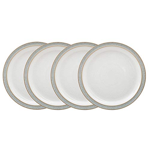 Denby - Elements Medium ljusgrå tallrikar set med 4 – diskmaskins- och mikrovågsugnssäkert porslin 22 cm – ljusgrå, vit keramisk stengods servis – chips- och sprickbeständiga lunchtallrikar