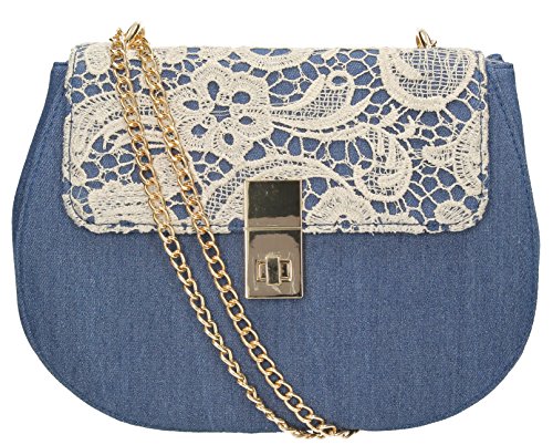 SwankySwans kvinnors alm spets denim crossbody-väska, blå, BLÅ