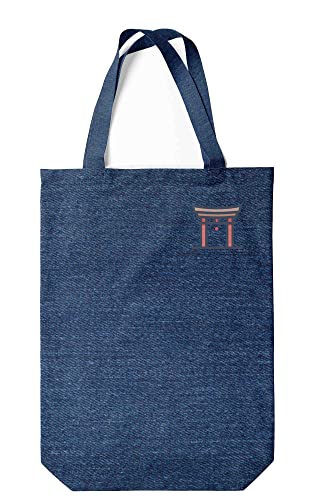 Green Fish Denim Tote Tote väska, Återanvändbar matkasse, shoppingväska, maskintvättbar, vikbar, denim handväska med handtag, 22 x 26 cm