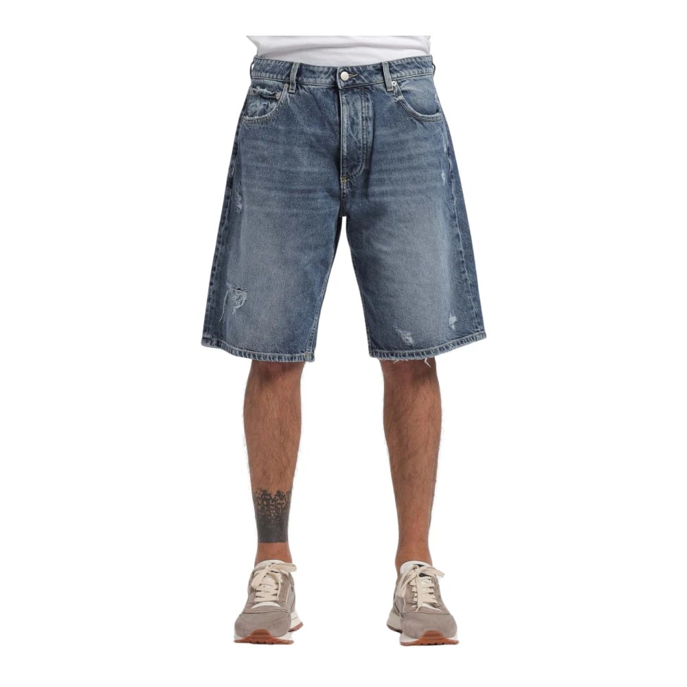 Icon Denim, Shorts , Herr, W33, Denim, Denim Bermuda Shorts med Medium Tvätt och Slitna Detaljer