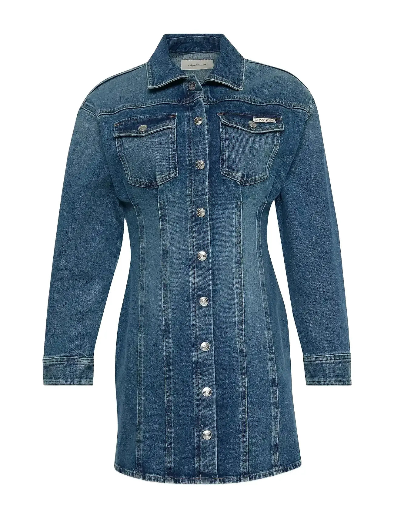 Calvin Klein Jeans Ls Denim Mini Dress Cold Springs - Blue - XXS