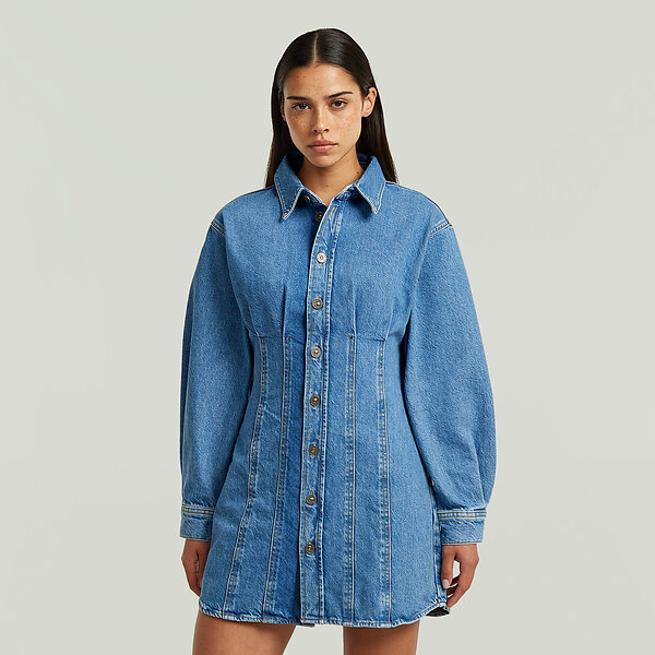Stine Goya Double Rinse Denim, Collared Coat Miniklänning