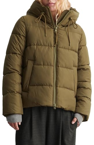 Marc OPolo denim quiltad jacka för kvinnor med huva vattenavvisande, Mörk jord, M