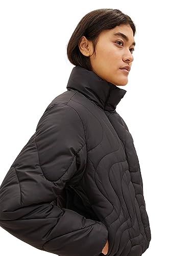 TOM TAILOR Denim dam quiltad jacka med ståkrage och fickor, 14482-djup svart, L