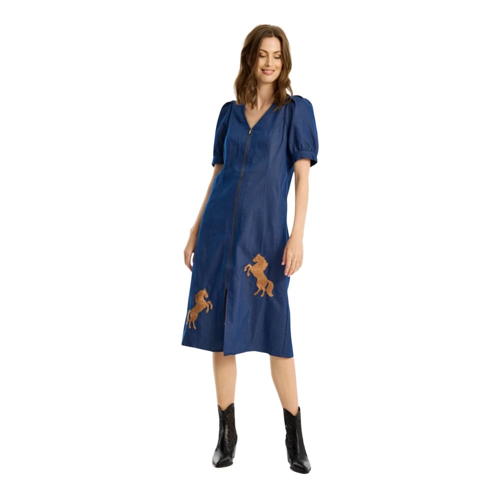 IN Front, Klänningar , Dam, 2Xl, Denim, Denim Blue Camala Klänning med Hästmotiv